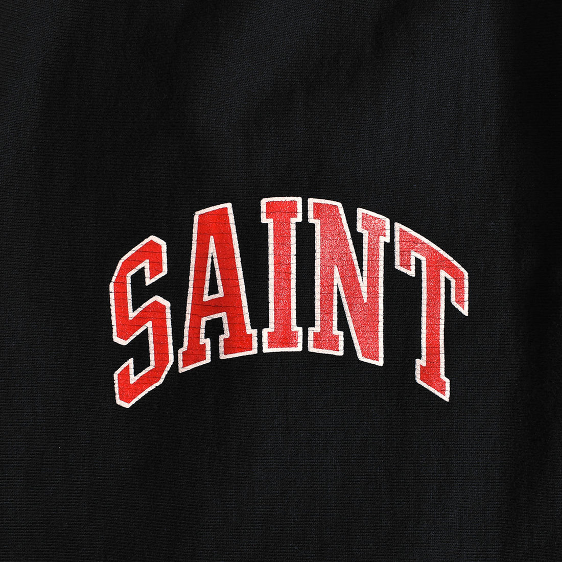 SAINT Mxxxxxxの商品に関しましてアイテム一点一点手作業により、ダメージや汚れ、またプリントのひび割れ加工などを施すことで、リアルなエイジングを再現しております。