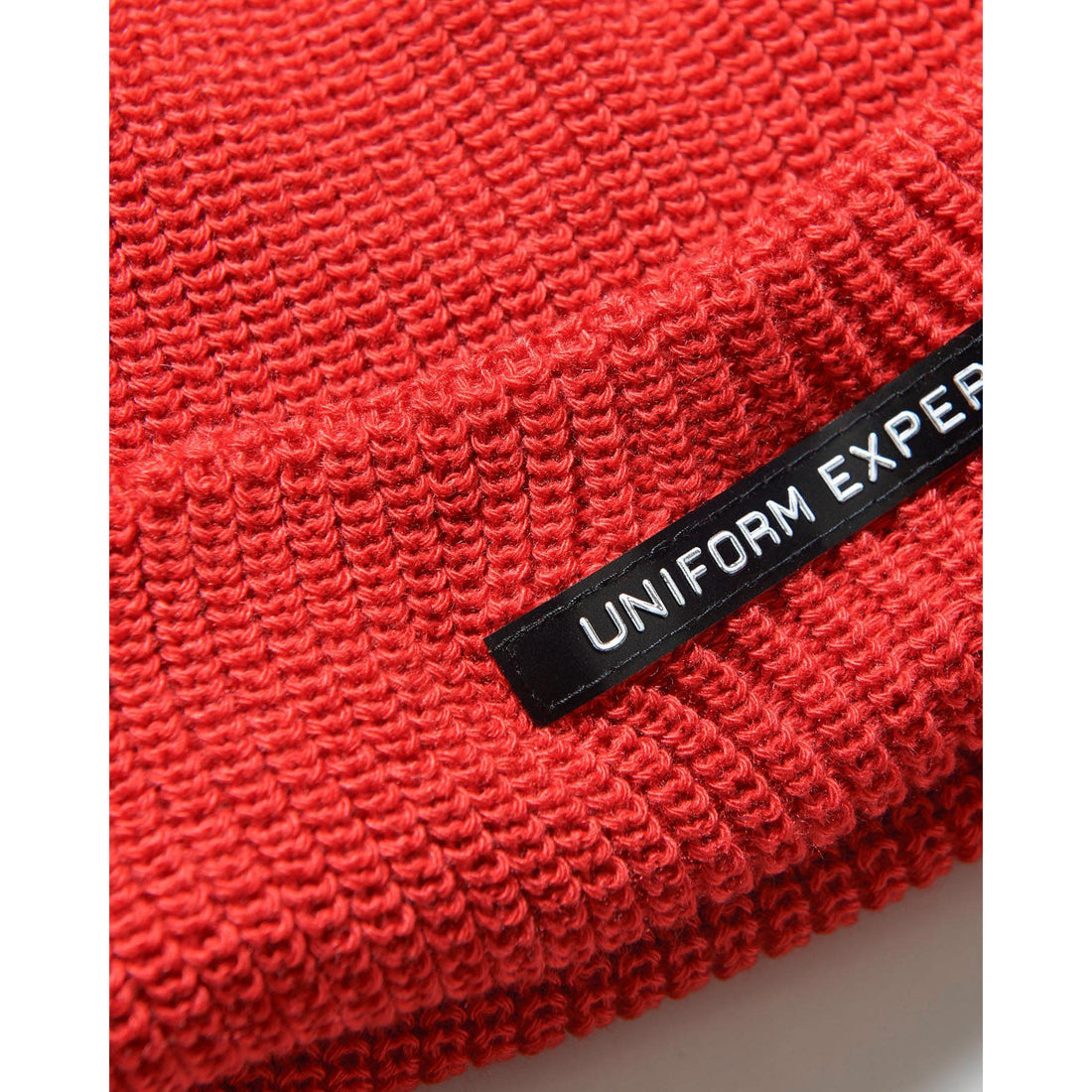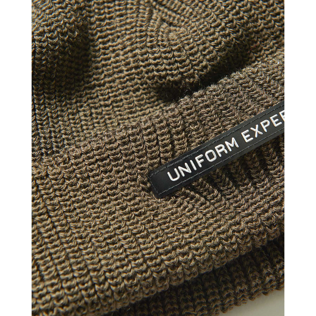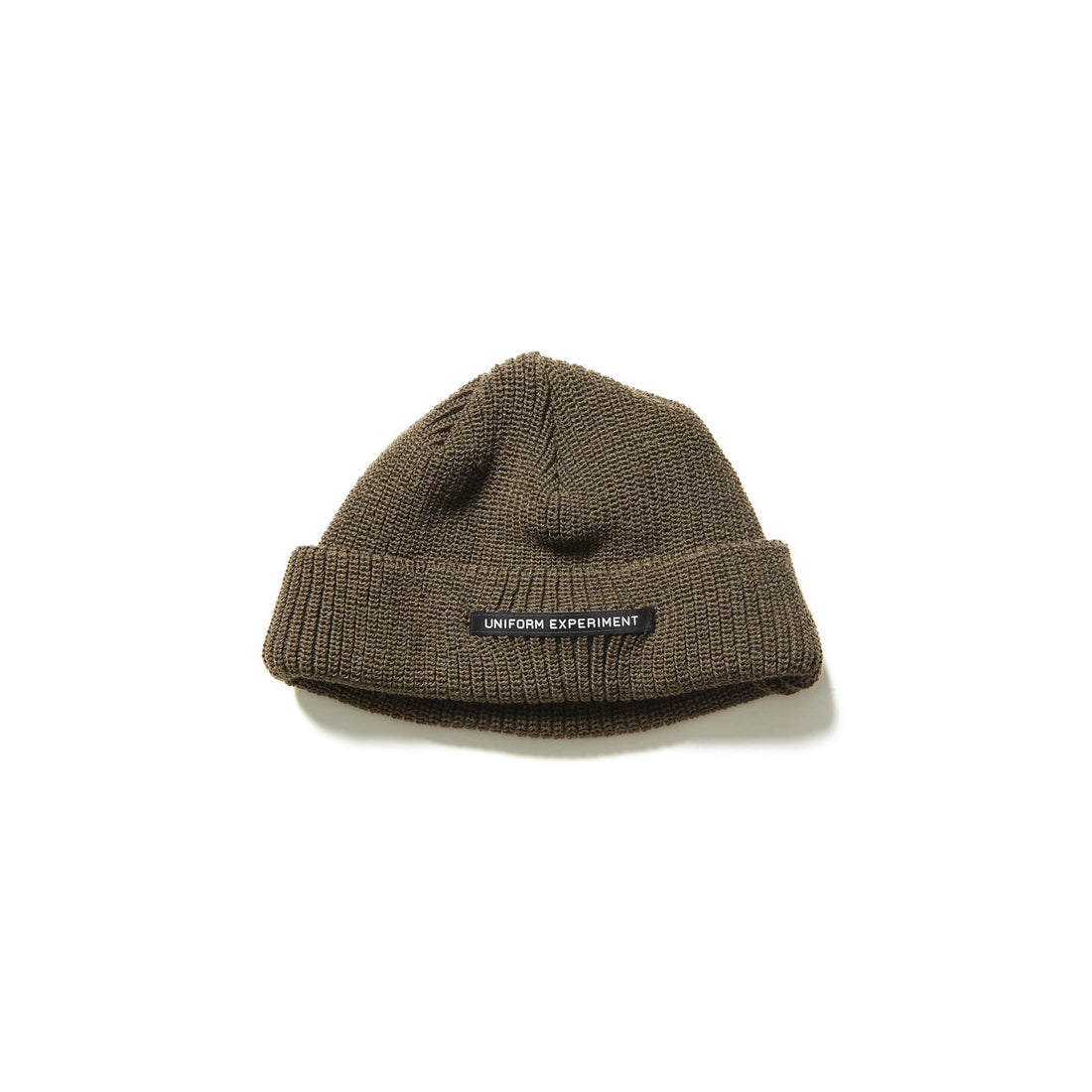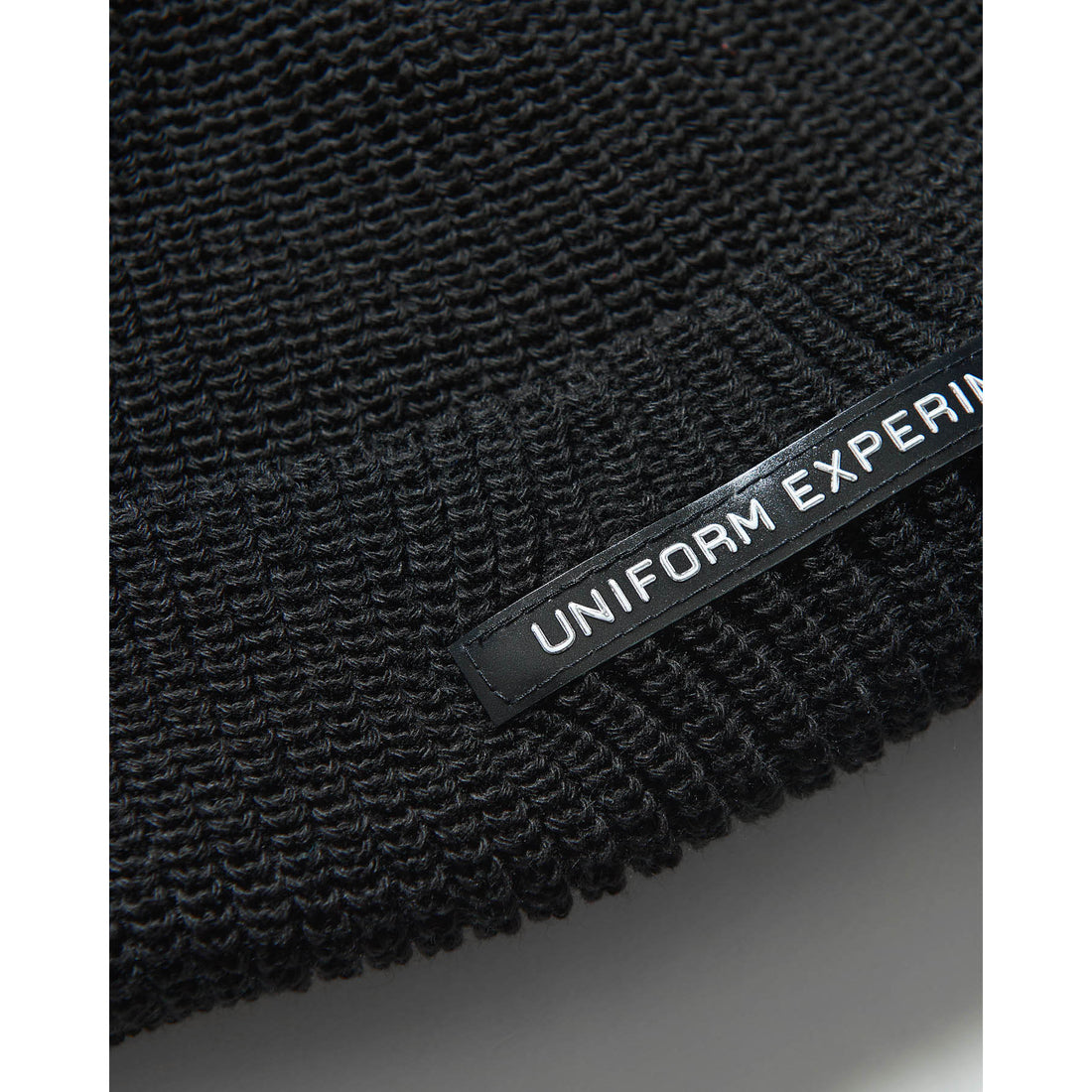 クラシックなミルスペックのテイストも感じさせるUNIFORM EXPERIMENTロゴの〈ANALOG LABEL〉をフロントカフに採用した、ウールライクなアクリル製ニットキャップ。