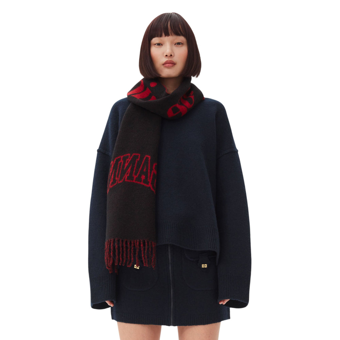 [GANNI]Fringed Wool Scarf/WINE(A6204)