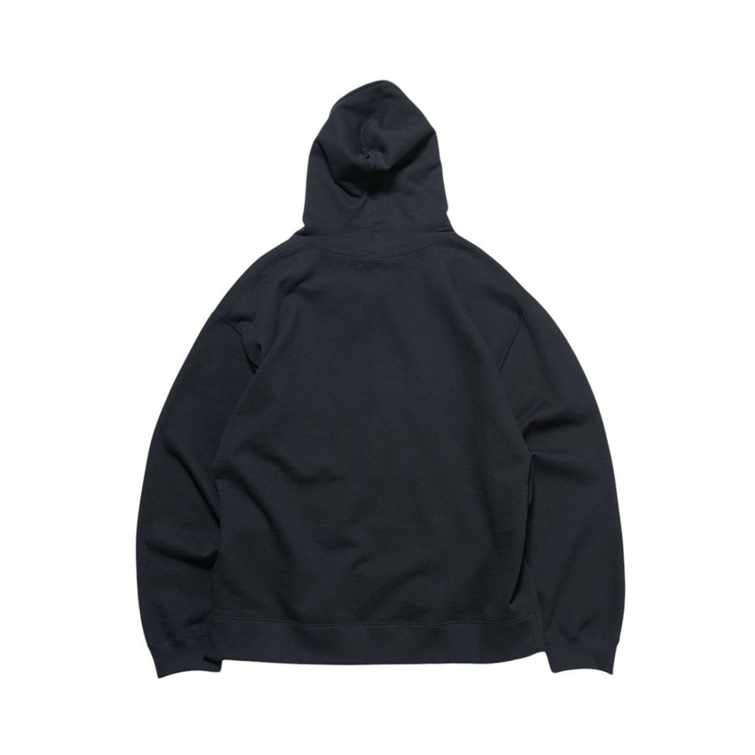 クラシックなスウェット然とした厚みやハリはありながら、肌触り滑らかで、ほのかな光沢が上質さを演出している裏毛コットンのフーディー。ゆったりと着られるルーズフィットで、フードのネック部分をやや高く設定している点もポイントです。