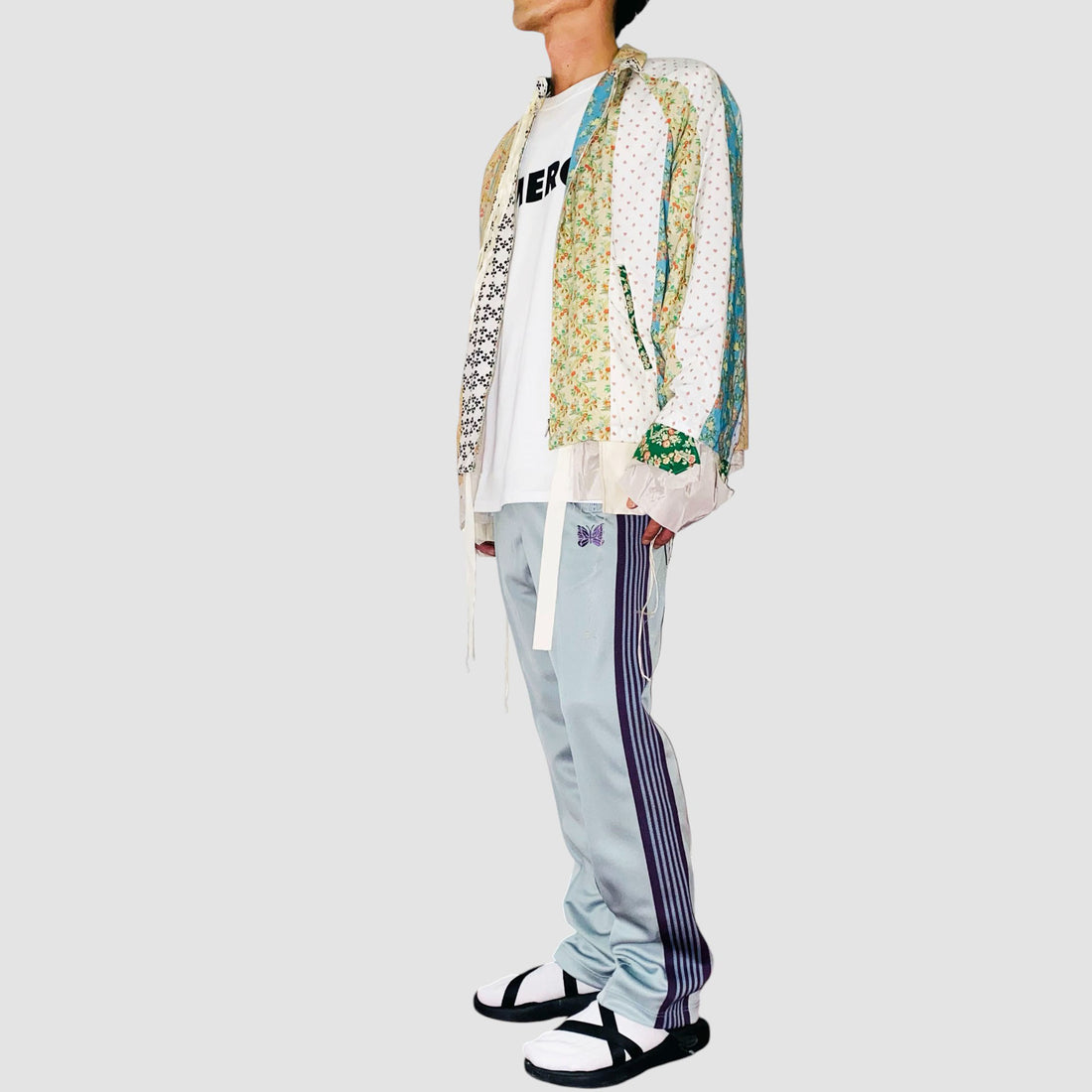 Midorikawa(ミドリカワ)が2025年秋冬に届ける、アート性とクラフト感を極めたフローラルパッチワークジャケット。さまざまな小花柄生地を縦に切り替えプリント、手作業的な温もりと視覚的リズムが感じられるデザインに仕上げられています。