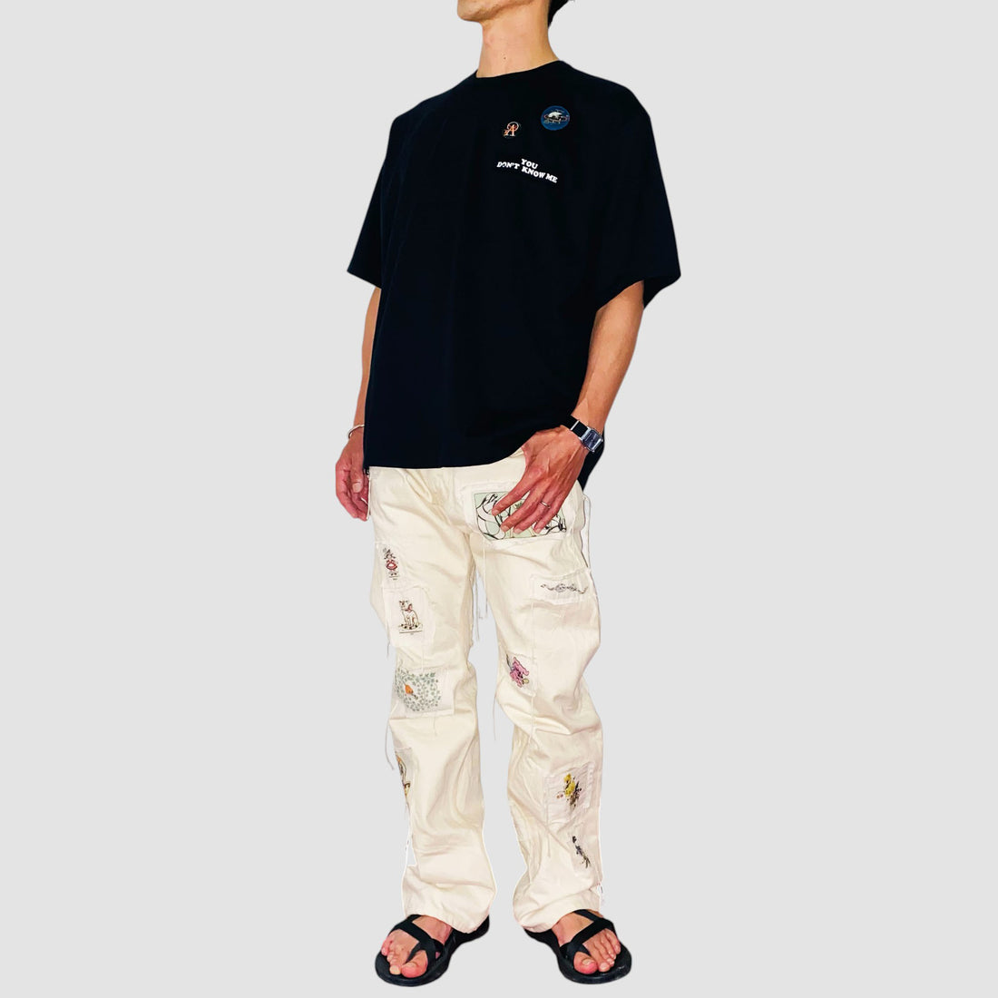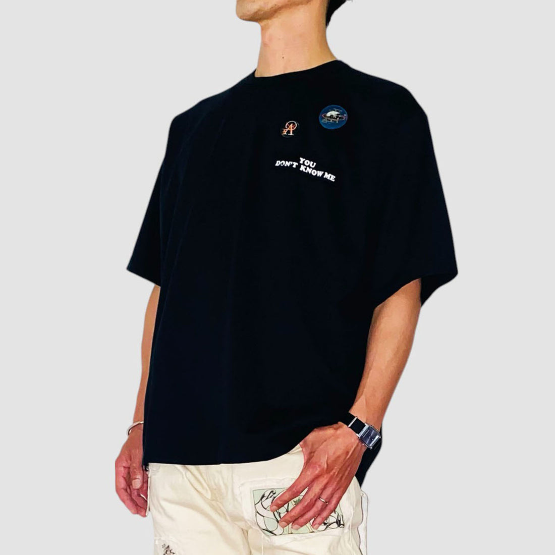-フロントにバッジ刺繍とパッチ