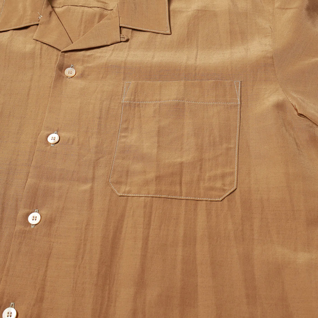 上品な光沢感が特徴的なショートスリーブオープンカラーシャツ。