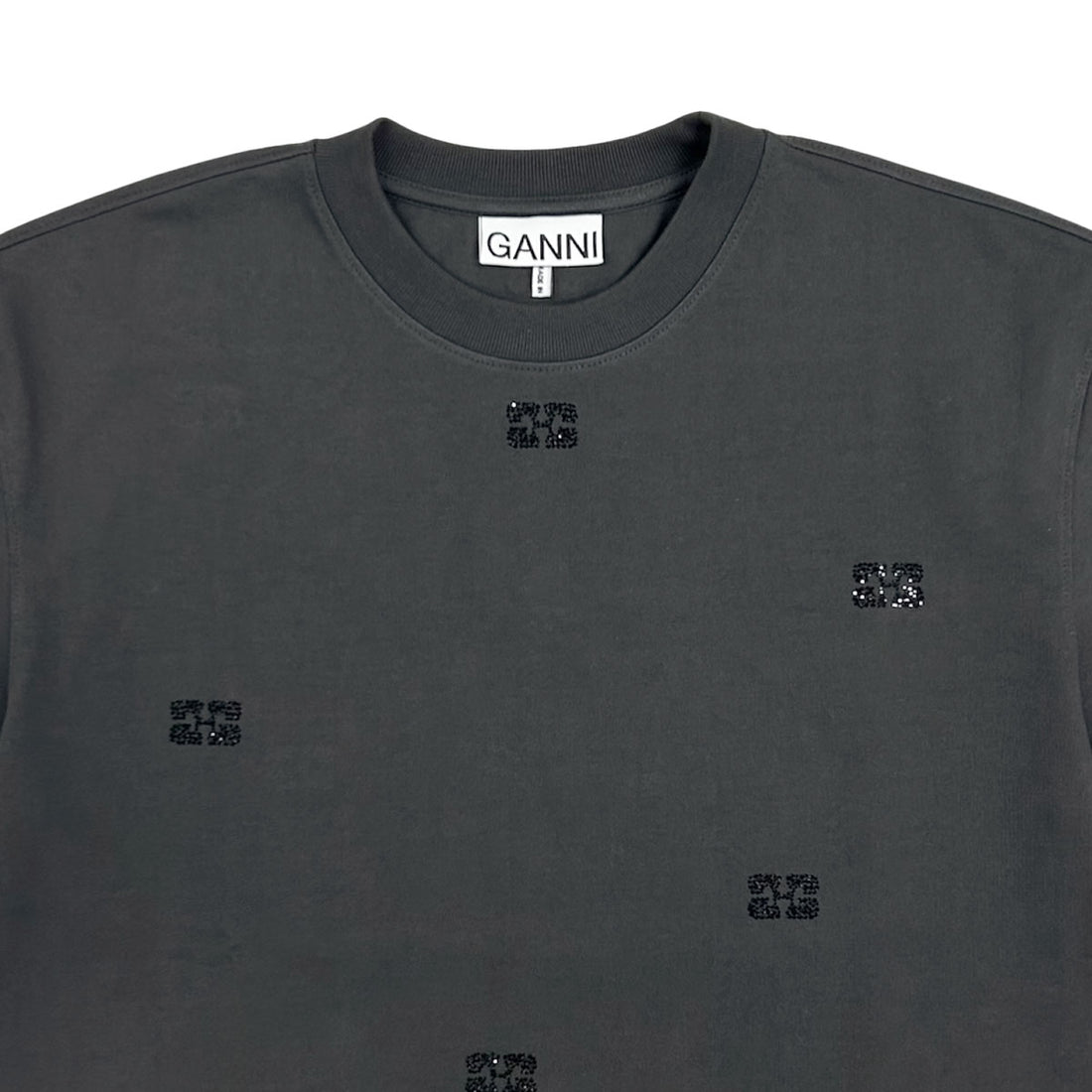[GANNI]Heavy Cotton Rhinestone Drop Shoulder T-shirt/BLACK(T4177)